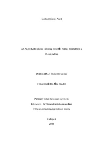 Harding, Noémi Anett (2025) Az Angol Kelet-indiai Társaság és kettős vallási mentalitása a 17. században. PhD thesis, Pázmány Péter Katolikus Egyetem.