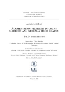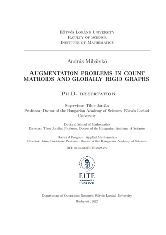 Mihálykó, András (2022) Augmentation problems in count matroids and globally rigid graphs. PhD thesis, ELTE.
