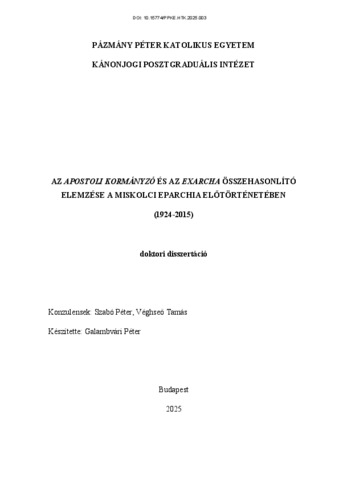 Galambvári, Péter (2025) Az apostoli kormányzó és az exarcha összehasonlító elemzése a miskolci eparchia előtörténetében (1924-2015). PhD thesis, Pázmány Péter Katolikus Egyetem.