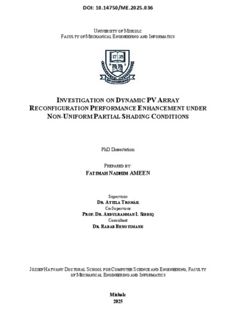 Ameen, Fatimah Nadhim (2025) Investigation on Dynamic PV Array Reconfiguration Performance Enhancement Under Non-Uniform Partial Shading Conditions. PhD thesis, Miskolci Egyetem.