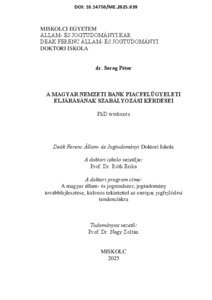 Sereg, Péter (2025) A Magyar Nemzeti Bank piacfelügyeleti eljárásának szabályozási kérdései. PhD thesis, Miskolci Egyetem.