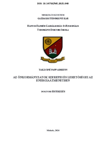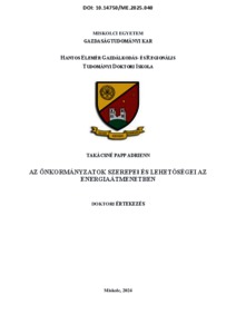 Takácsné Papp, Adrienn (2025) Az önkormányzatok szerepei és lehetőségei az energiaátmenetben. PhD thesis, Miskolci Egyetem.