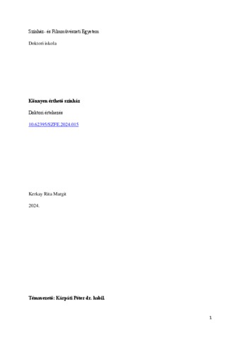 Kerkay, Rita Margit (2025) Könnyen érthető színház. PhD thesis, Színház- és Filmművészeti Egyetem.