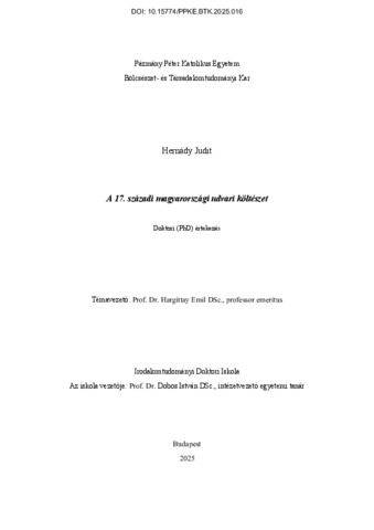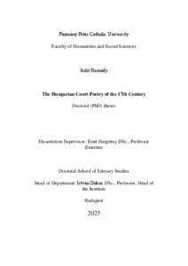Hernády, Judit (2025) A 17. századi magyarországi udvari költészet. PhD thesis, Pázmány Péter Katolikus Egyetem.