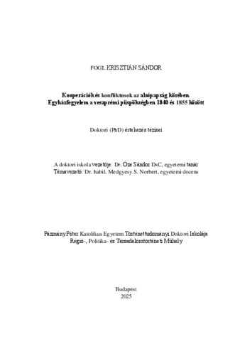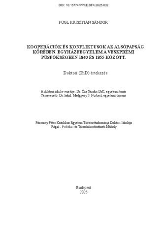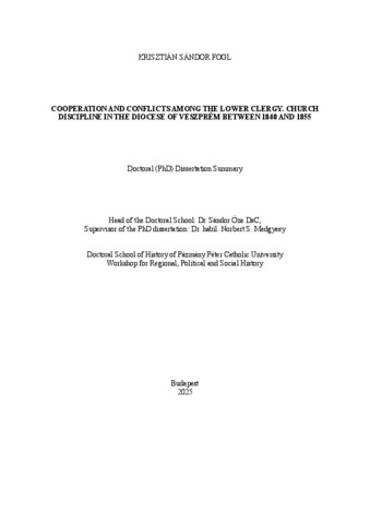 Fogl, Krisztián Sándor (2025) Kooperációk és konfliktusok az alsópapság körében : Egyházfegyelem a veszprémi püspökségben 1840 és 1855 között. PhD thesis, Pázmány Péter Katolikus Egyetem.