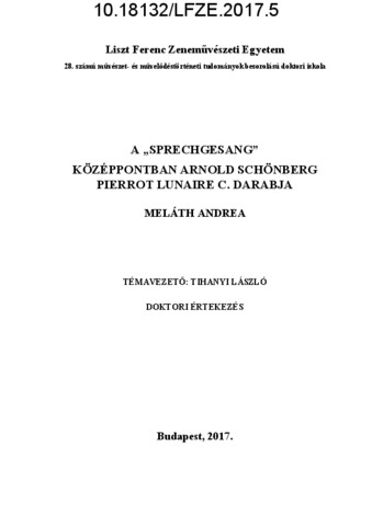 Meláth, Andrea (2017) A "Sprechgesang" : Középpontban Arnold Schönberg Pierrot Lunaire c. darabja. PhD thesis, Liszt Ferenc Zeneművészeti Egyetem.