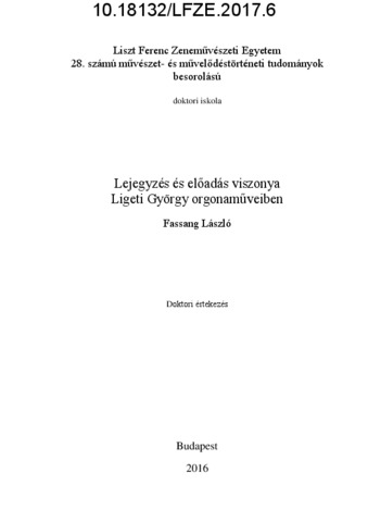 Fassang, László (2017) Lejegyzés és előadás viszonya Ligeti György orgonaműveiben. PhD thesis, Liszt Ferenc Zeneművészeti Egyetem.