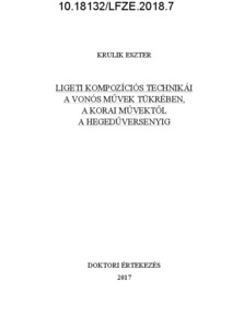 Krulik, Eszter (2018) Ligeti kompozíciós technikái a vonós művek tükrében, a korai művektől a hegedűversenyig. PhD thesis, Liszt Ferenc Zeneművészeti Egyetem.