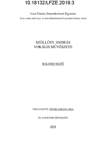Balogh, Máté (2019) Szőllősy András vokális művészete. PhD thesis, Liszt Ferenc Zeneművészeti Egyetem.