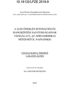 Csuhaj-Barna Tiborné Lakatos, Ágnes (2019) A jazz éneklés intonációs és hangképzési sajátosságainak vizsgálata az afroamerikai népzenétől napjainkig. PhD thesis, Liszt Ferenc Zeneművészeti Egyetem.