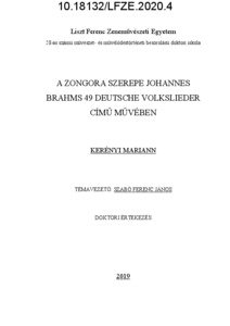 Kerényi, Mariann (2020) A zongora szerepe Johannes Brahms 49 Deutsche Volkslieder című művében. PhD thesis, Liszt Ferenc Zeneművészeti Egyetem.
