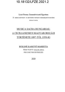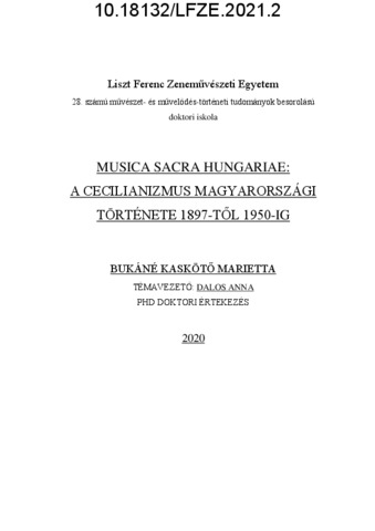 Bukáné Kaskötő, Marietta (2021) Musica Sacra Hungariae: A cecilianizmus magyarországi története 1897-től 1950-ig. PhD thesis, Liszt Ferenc Zeneművészeti Egyetem.