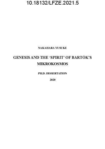 Nakahara, Yusuke (2021) Genesis and the "Spirit" of Bartók's Mikrokosmos. PhD thesis, Liszt Ferenc Zeneművészeti Egyetem.