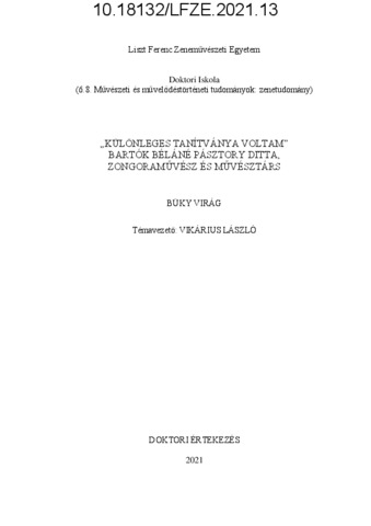 Büky, Virág (2022) „Különleges tanítványa voltam” : Bartók Béláné Pásztory Ditta, zongoraművész és művésztárs. PhD thesis, Liszt Ferenc Zeneművészeti Egyetem.