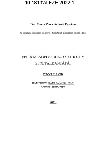 Dinya, Dávid (2022) Felix Mendelssohn-Bartholdy zsoltárkantátái. PhD thesis, Liszt Ferenc Zeneművészeti Egyetem.
