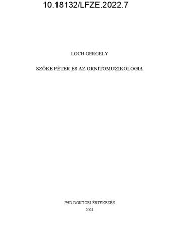Loch, Gergely (2022) Szőke Péter és az ornitomuzikológia. PhD thesis, Liszt Ferenc Zeneművészeti Egyetem.
