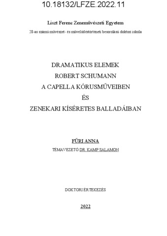 Fűri, Anna (2022) Dramatikus elemek Robert Schumann a capella kórusműveiben és zenekari kíséretes balladáiban. PhD thesis, Liszt Ferenc Zeneművészeti Egyetem.