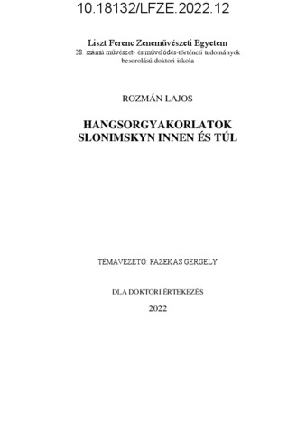 Rozmán, Lajos (2022) Hangsorgyakorlatok Slonimskyn innen és túl. PhD thesis, Liszt Ferenc Zeneművészeti Egyetem.