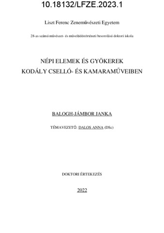 Balogh-Jámbor, Janka (2023) Népi elemek és gyökerek Kodály cselló-és kamaraműveiben. PhD thesis, Liszt Ferenc Zeneművészeti Egyetem.