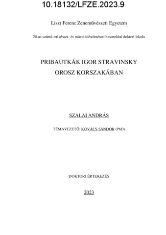 Szalai, András (2023) Pribautkák Igor Stravinsky orosz korszakában. PhD thesis, Liszt Ferenc Zeneművészeti Egyetem.