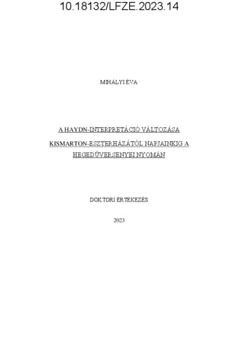 Mihályi, Éva (2023) A Haydn-interpretáció változása Kismarton-Eszterházától napjainkig a hegedűversenyei nyomán. PhD thesis, Liszt Ferenc Zeneművészeti Egyetem.