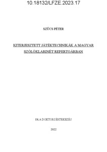 Szűcs, Péter (2023) Kiterjesztett játéktechnikák a magyar szólóklarinét repertoárban : Interpretáció és notáció. PhD thesis, Liszt Ferenc Zeneművészeti Egyetem.
