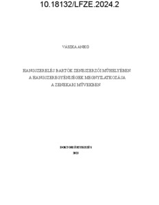 Vászka, Anikó (2024) Hangszerelés Bartók zeneszerzői műhelyében: A hangszeregyéniségek megnyilatkozása a zenekari művekben. PhD thesis, Liszt Ferenc Zeneművészeti Egyetem.
