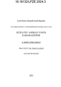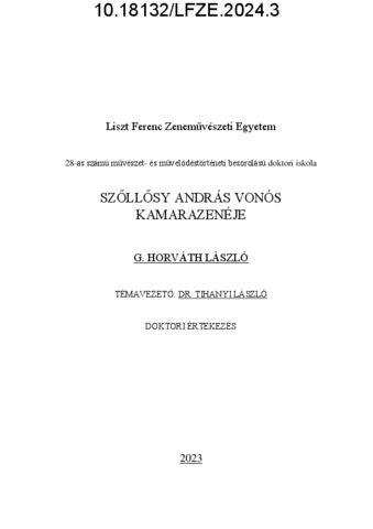 G. Horváth, László (2024) Szőllősy András vonós kamarazenéje. PhD thesis, Liszt Ferenc Zeneművészeti Egyetem.