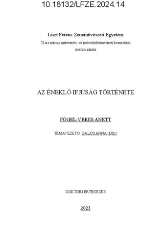 Fógel-Veres, Anett (2024) Az éneklő ifjúság története. PhD thesis, Liszt Ferenc Zeneművészeti Egyetem.
