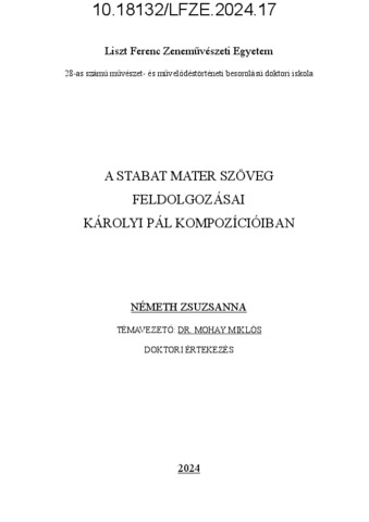 Németh, Zsuzsanna (2024) A Stabat Mater szöveg feldolgozásai Károlyi Pál kompozícióiban. PhD thesis, Liszt Ferenc Zeneművészeti Egyetem.