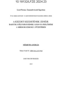 Németh, András (2024) A kezdet kezdetének zenéje : Bartók stílusjegyeinek szerves fejlődése a mikrokozmosz I. füzetében. PhD thesis, Liszt Ferenc Zeneművészeti Egyetem.