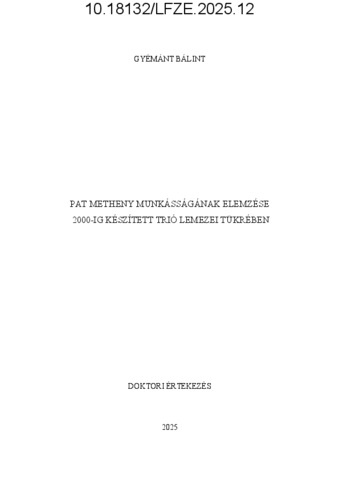 Gyémánt, Bálint (2025) Pat Metheny munkásságának elemzése 2000-ig készített trió lemezei tükrében. PhD thesis, Liszt Ferenc Zeneművészeti Egyetem.