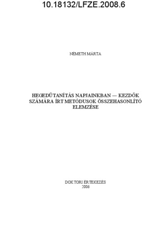 Németh, Márta (2008) Hegedűtanítás napjainkban - kezdők számára írt metódusok összehasonlító elemzése. PhD thesis, Liszt Ferenc Zeneművészeti Egyetem.