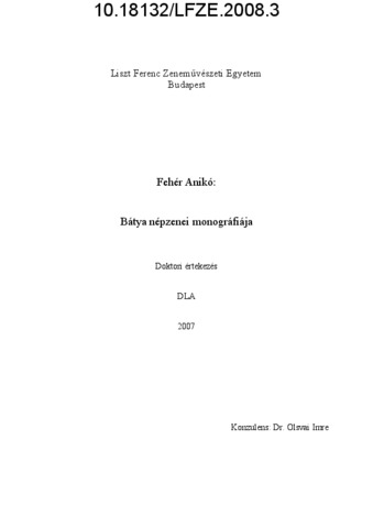 Fehér, Anikó (2008) Bátya népzenei monográfiája. PhD thesis, Liszt Ferenc Zeneművészeti Egyetem.