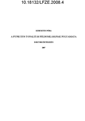 Keresztes, Nóra (2008) A funkciós tonalitás felbomlásának folyamata. PhD thesis, Liszt Ferenc Zeneművészeti Egyetem.