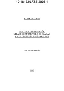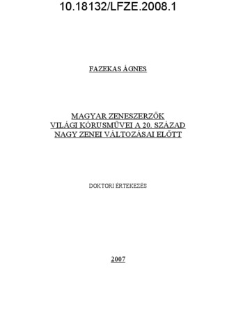 Fazekas, Ágnes (2008) Magyar zeneszerzők világi kórusművei a 20. század nagy zenei változásai előtt : A cappella kórusművek gyermek- és nőikarra. PhD thesis, Liszt Ferenc Zeneművészeti Egyetem.