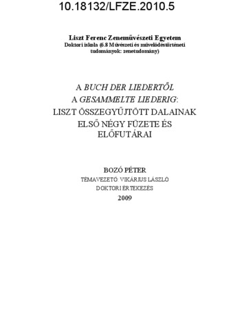 Bozó, Péter (2010) A Buch der Liedertől a Gesammelte Liederig: Liszt összegyűjtött dalainak első négy füzete és előfutárai. PhD thesis, Liszt Ferenc Zeneművészeti Egyetem.