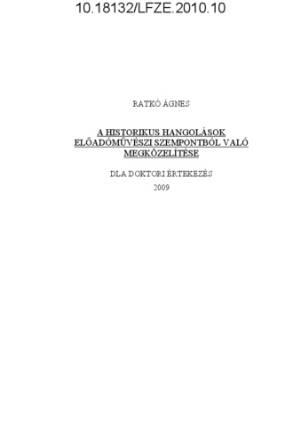 Ratkó, Ágnes (2010) A historikus hangolások előadóművészi szempontból való megközelítése. PhD thesis, Liszt Ferenc Zeneművészeti Egyetem.