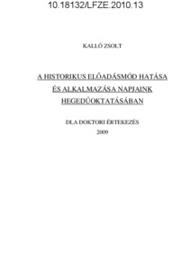 Kalló, Zsolt (2010) A historikus előadásmód hatása és alkalmazása napjaink hegedűoktatásában. PhD thesis, Liszt Ferenc Zeneművészeti Egyetem.