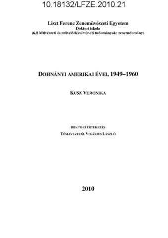 Kusz, Veronika (2011) Dohnányi amerikai évei, 1949-1960. PhD thesis, Liszt Ferenc Zeneművészeti Egyetem.