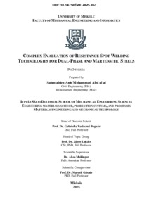 Abd Al Al, Sahm alden Anis Mohammad (2025) Complex evaluation of resistance spot welding technologies for dual-phase and martensitic steels. PhD thesis, Miskolci Egyetem.