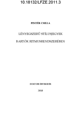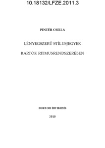 Pintér, Csilla (2011) Lényegszerű stílusjegyek Bartók ritmusrendszerében. PhD thesis, Liszt Ferenc Zeneművészeti Egyetem.