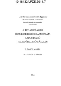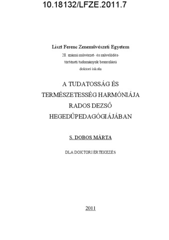 S. Dobos, Márta (2011) A tudatosság és természetesség harmóniája Rados Dezső hegedűpedagógiájában. PhD thesis, Liszt Ferenc Zeneművészeti Egyetem.