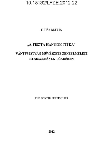 Illés, Mária (2013) "A tiszta hangok titka" : Vántus István művészete zeneelméleti rendszerének tükrében. PhD thesis, Liszt Ferenc Zeneművészeti Egyetem.