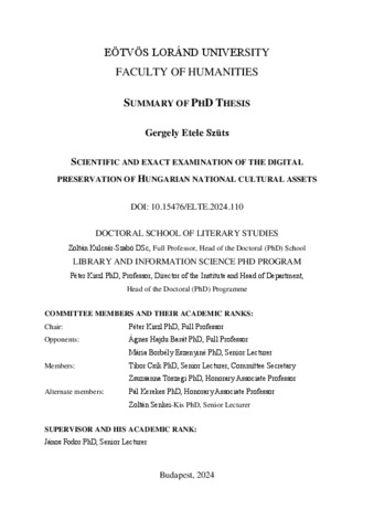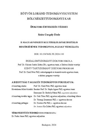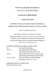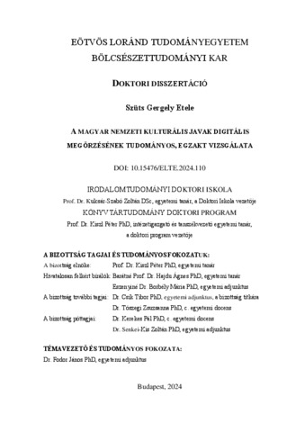 Szüts, Gergely Etele (2024) A magyar nemzeti kulturális javak digitális megőrzésének tudományos, egzakt vizsgálata = Scientific and Exact Examination of the Digital Preservation of Hungarian National Cultural Assets. PhD thesis, ELTE.
