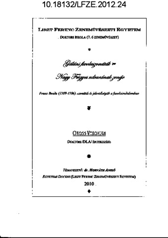 Oross, Veronika (2012) Gáláns fuvolaszonáták - Nagy Frigyes udvarának zenéje : Franz Benda (1709–1786) szonátái és jelentőségük a fuvolairodalomban. PhD thesis, Liszt Ferenc Zeneművészeti Egyetem.