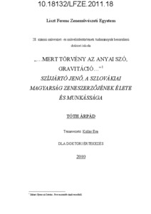 Tóth, Árpád (2012) „…mert törvény az anyai szó, gravitáció…” : Szíjjártó Jenő, a szlovákiai magyarság zeneszerzőjének élete és munkássága. PhD thesis, Liszt Ferenc Zeneművészeti Egyetem.