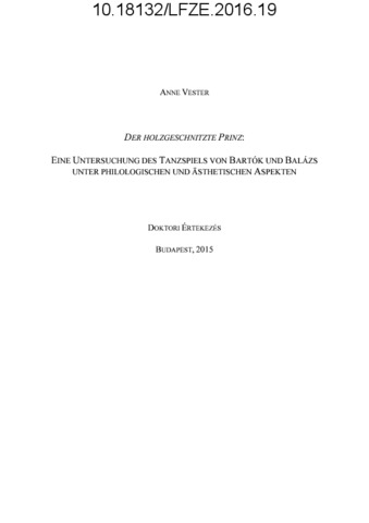 Vester, Anne (2016) Der Holzgeschnitzte Prinz: Eine Untersuchung des Tanzspiels von Bartók und Balázs unter philologischen und ästhetischen Aspekten. PhD thesis, Liszt Ferenc Zeneművészeti Egyetem.