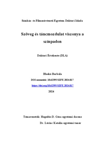 Blaskó, Borbála (2025) Szöveg és táncmozdulat viszonya a színpadon. PhD thesis, Színház- és Filmművészeti Egyetem.