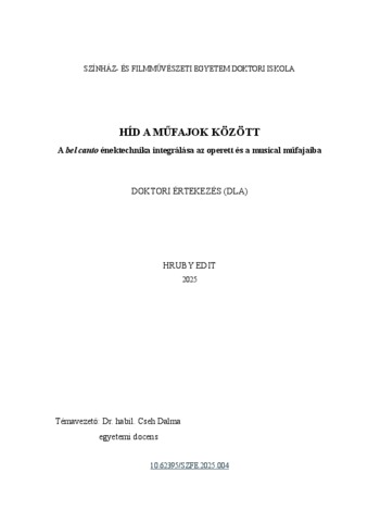 Hruby, Edit (2025) Híd a műfajok között : A bel canto énektechnika integrálása az operett és a musical műfajaiba. PhD thesis, Színház- és Filmművészeti Egyetem.